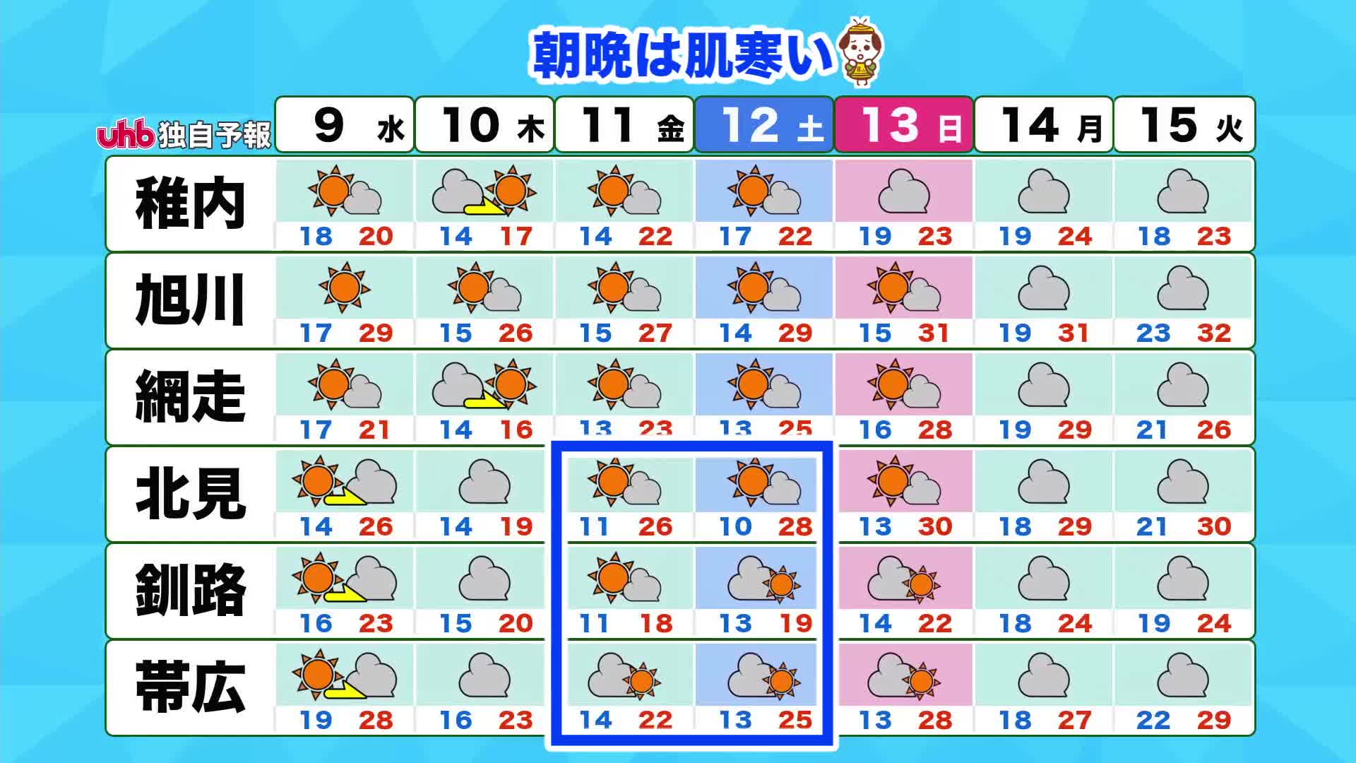 【え!?週末はストーブ欲しい?】オホーツク海高気圧が張り出す…今週後半は道東内陸部で最低気温は10℃【北海道の天気 8日(火)】