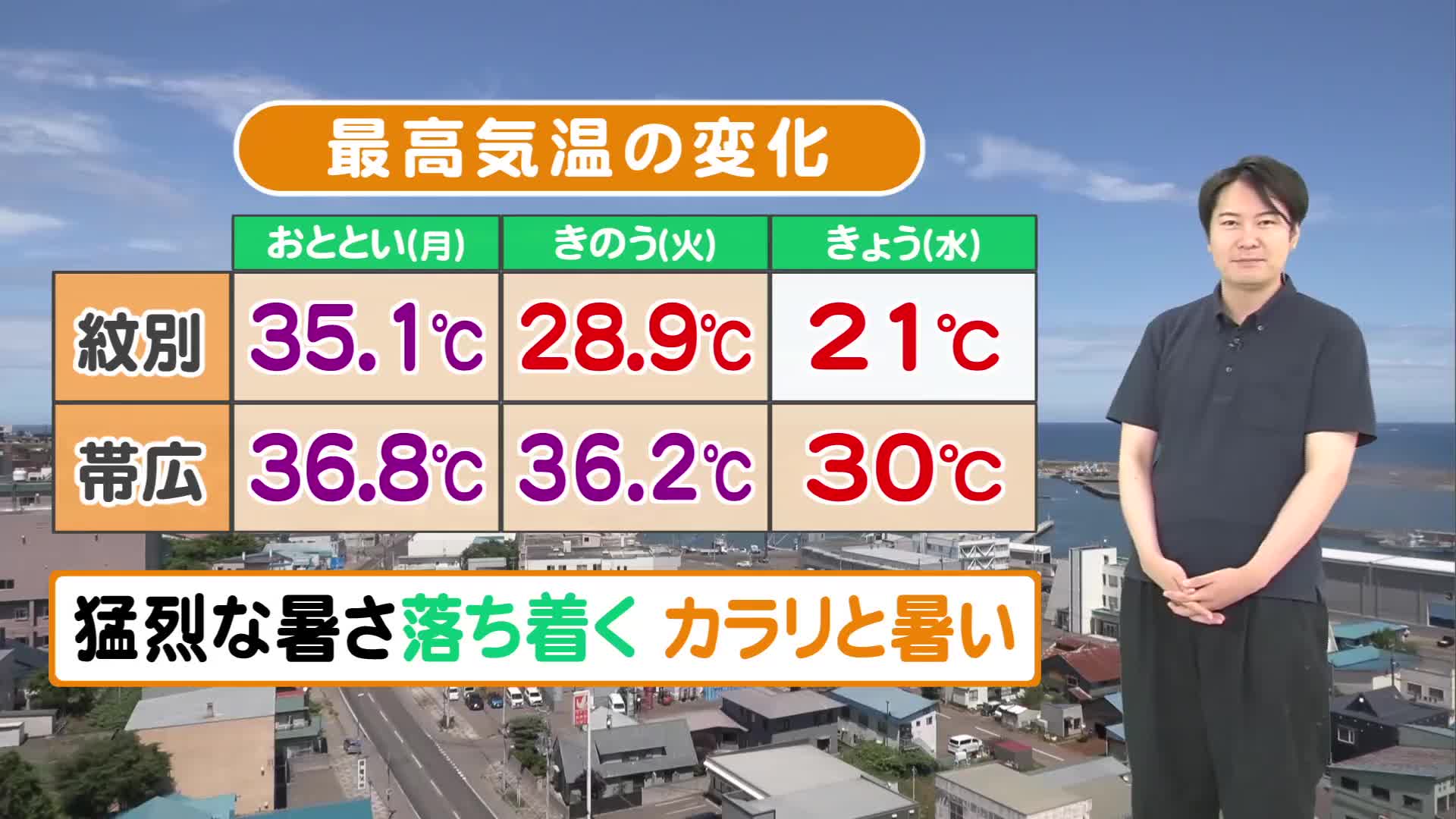 【カラッと晴れ】北海道は4日ぶりに猛暑日から解放!オホーツク海から涼しい空気流入!週後半は肌寒い所も【北海道の天気 9日(水)】