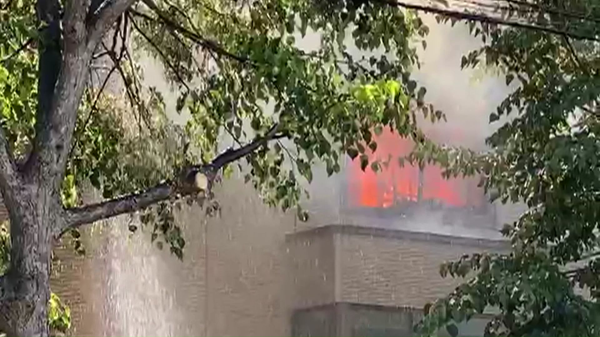 窓から噴き出す炎…懸命な消火活動が続いています。