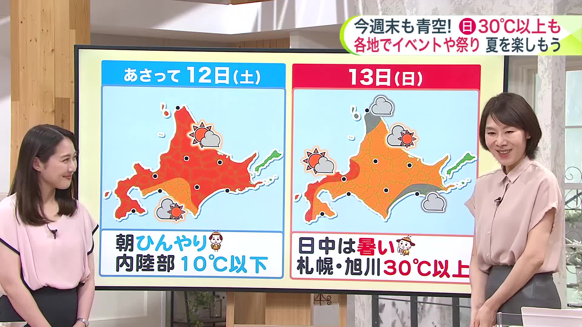 札幌や旭川の最高気温は30℃以上で、真夏日に戻る所がありそうです。