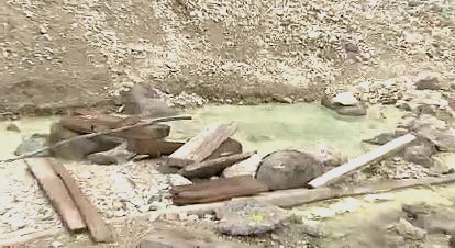 「流れをせき止めて作られた露天風呂の周辺には、椅子のために使っていたのか、木の板が置かれているほか、タバコの吸い殻まで放置されています」(木村洋太記者)