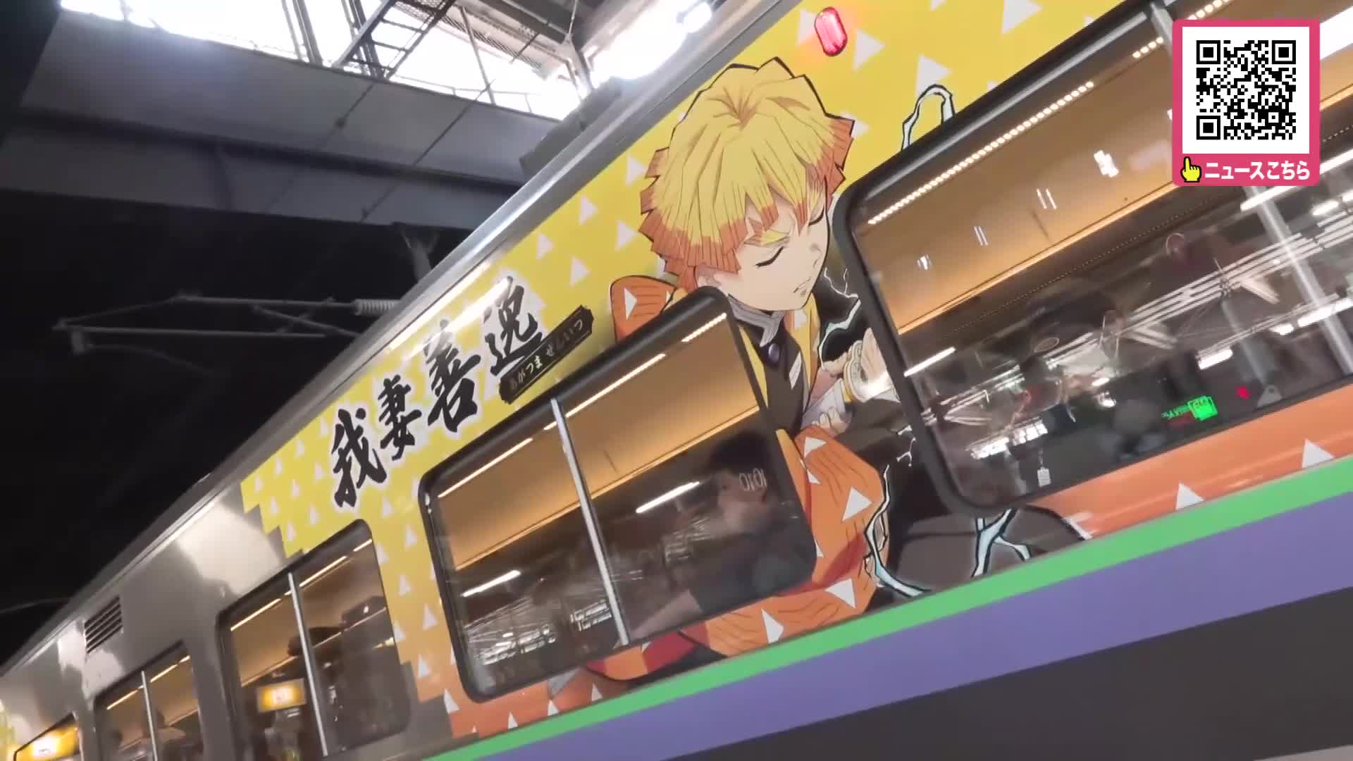 人気漫画「鬼滅の刃」の劇場版の新作公開を前に、記念のラッピング列車が運行されました。