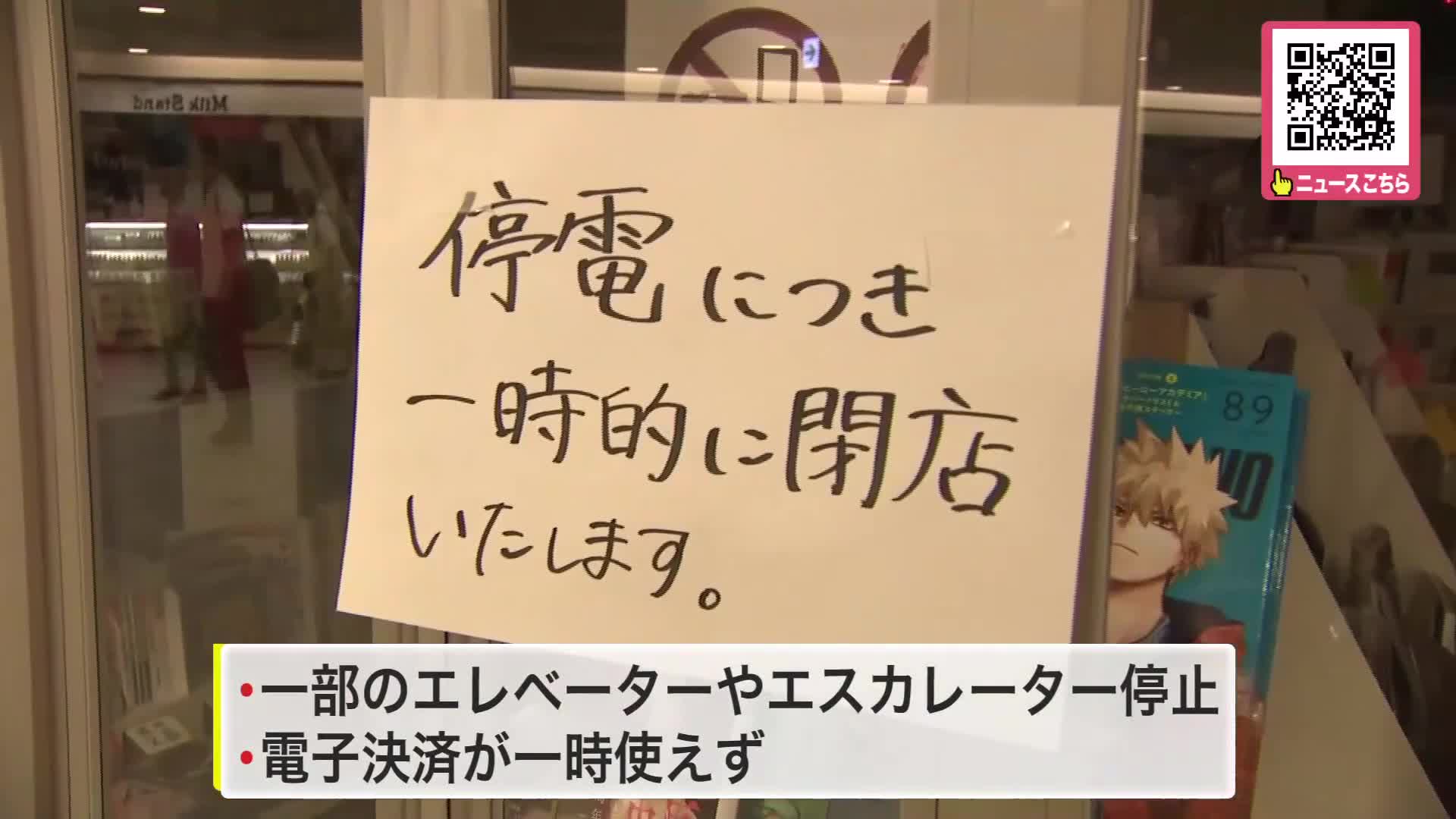 この影響で、一部の照明が消え、エレベーターやエスカレーターが停止。土産物店などで、電子決済が一時使えなくなりました。