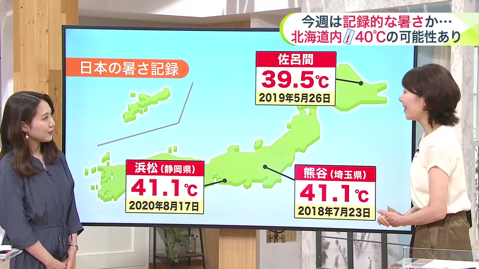 【北海道で40℃!?】今週は北見や帯広で38℃予報のほか道東は40℃の地域も…北海道で日本の暑さ記録を更新する可能性も【北海道の天気 21日(月)】