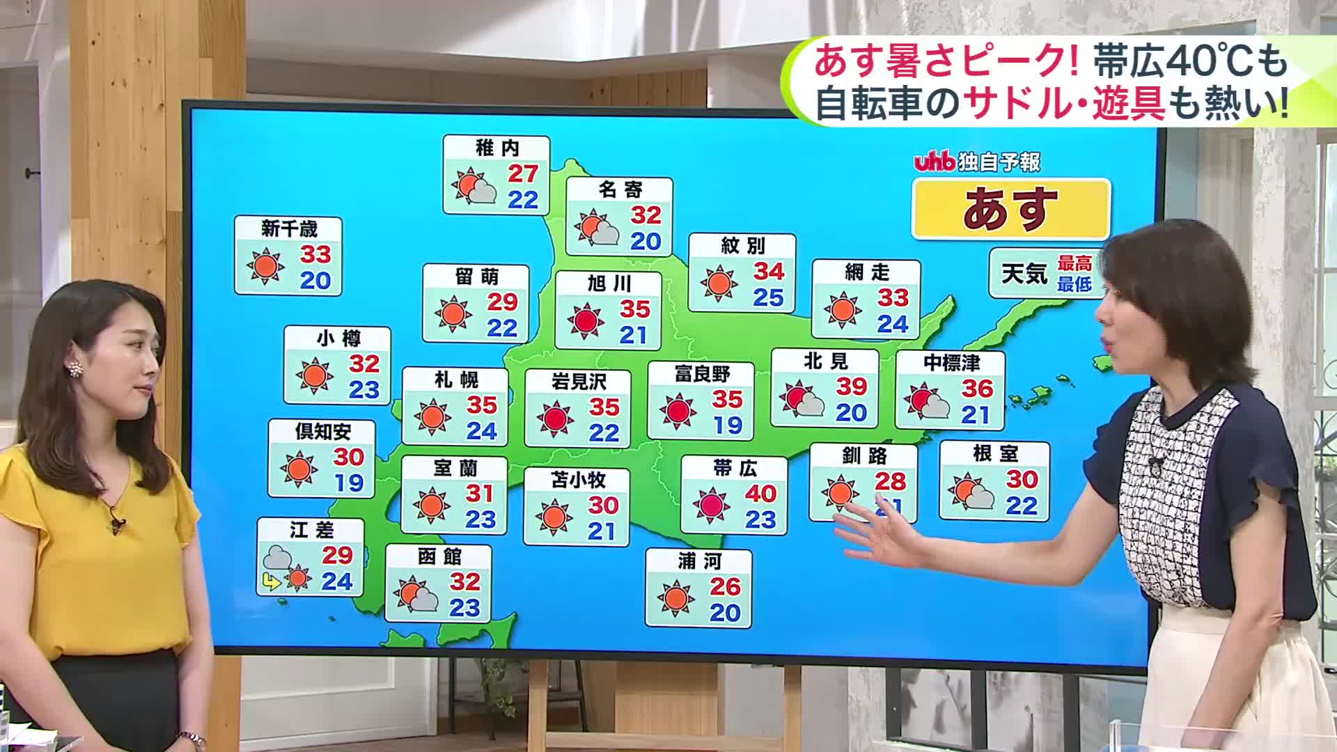 札幌・岩見沢、旭川など35℃。北見39℃、帯広40℃です。