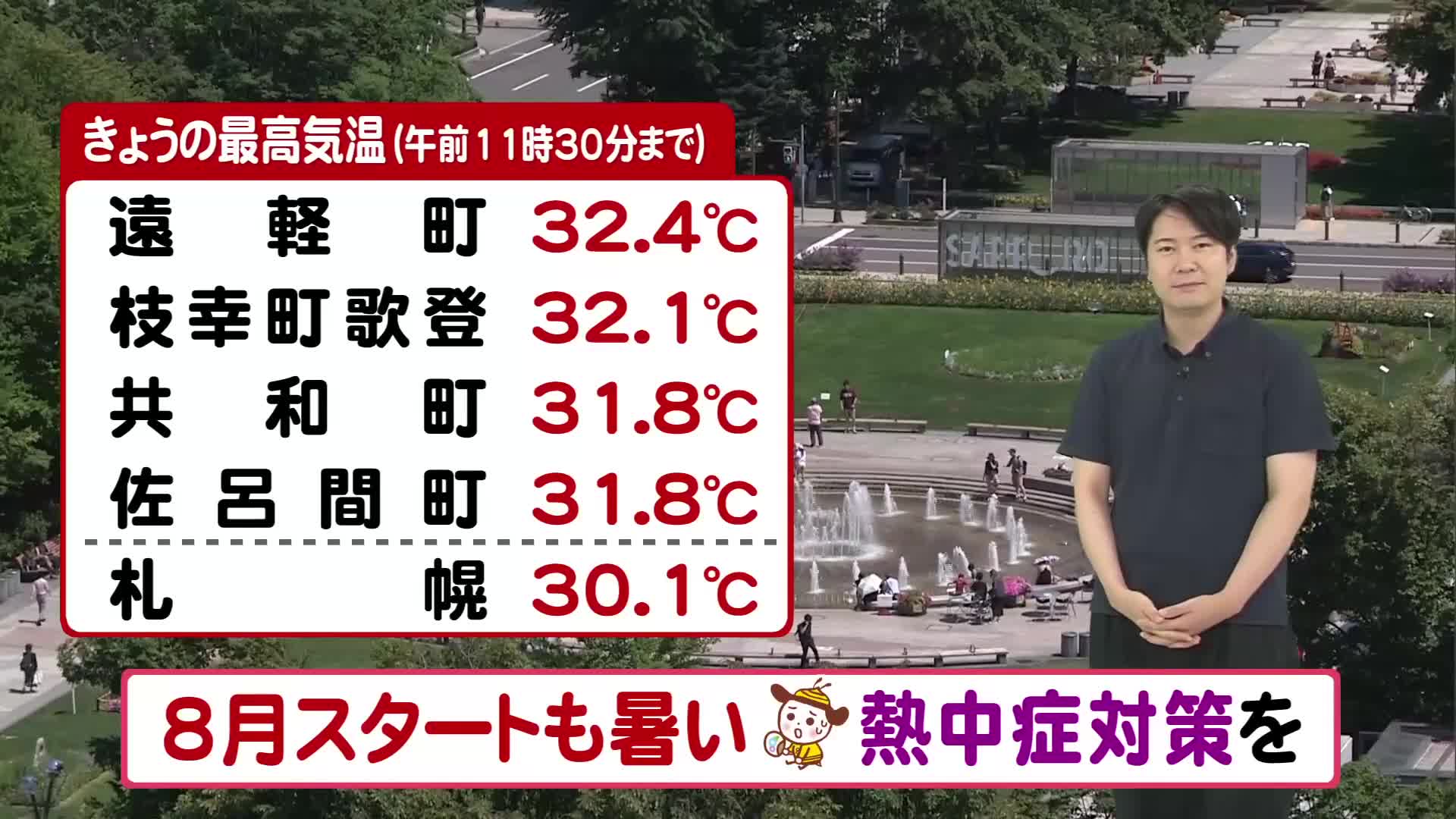 【8月スタートも厳しい暑さ】北海道は広範囲で30℃以上の真夏日に!土日も湿度高く蒸し暑さ続く【北海道の天気 1日(金)】