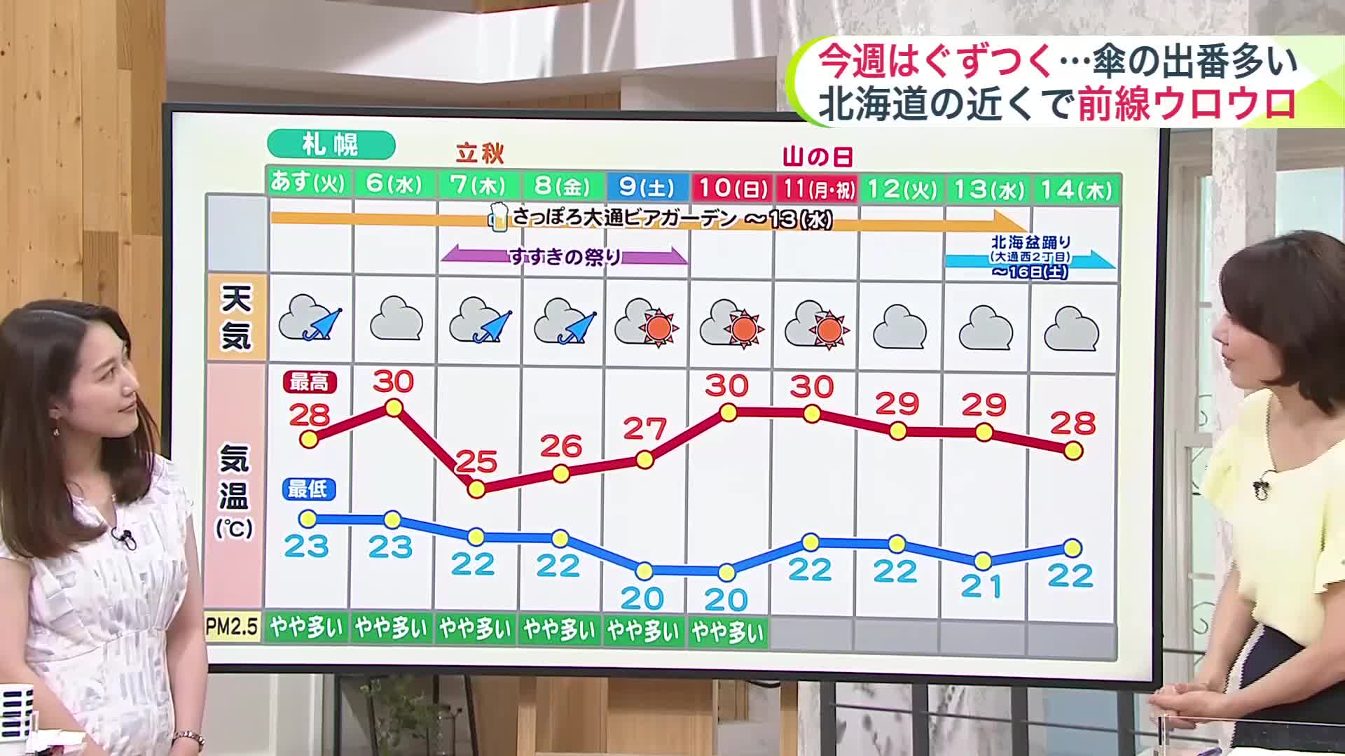 札幌の最高気温は28℃で、真夏日から解放されるでしょう。