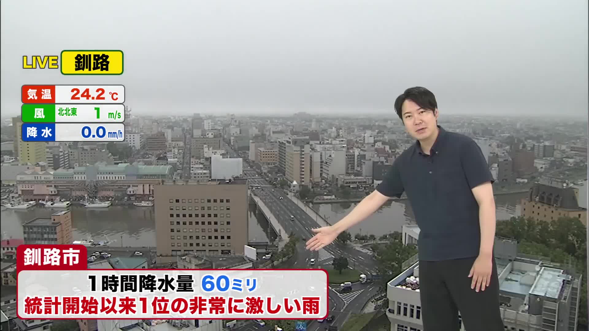 釧路市では、1時間に60ミリ、統計開始以来1位の非常に激しい雨が観測されました。