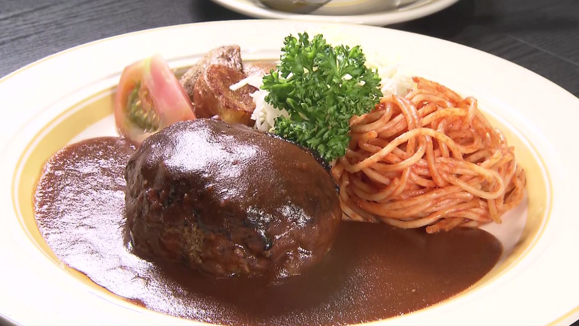 「肉汁があふれました! ふわっふわのおいしそうなハンバーグ、たまらないですね」(八木隆太郎フィールドキャスター)