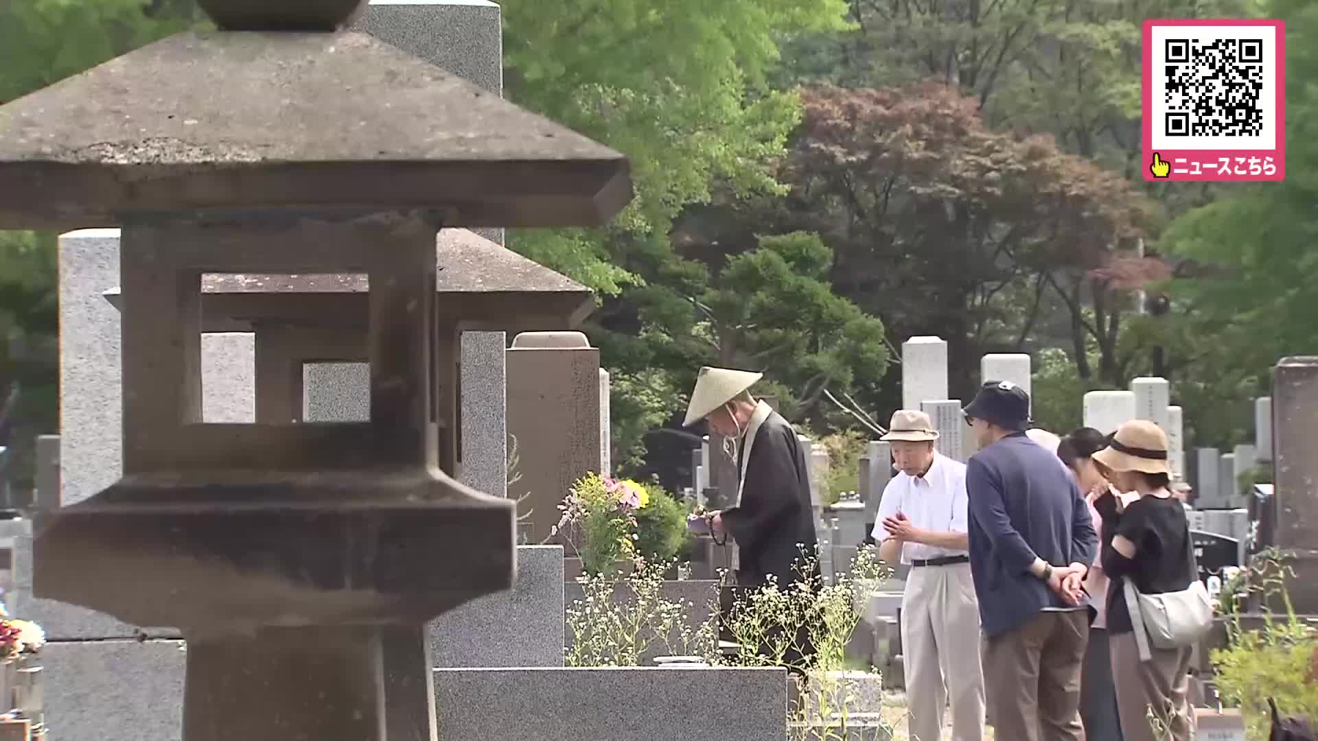 霊園には朝から大勢の人が訪れ、先祖の霊に手を合わせていました。