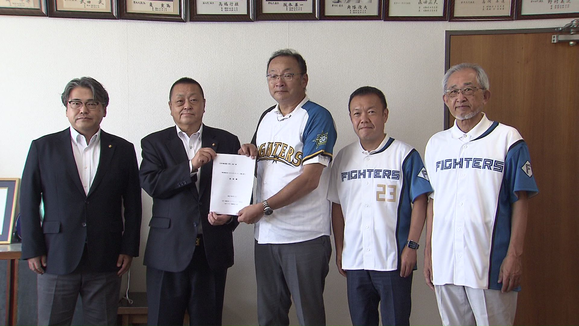 要望書を提出したのは「江別・北海道日本ハムファイターズファーム誘致期成会」のメンバーです。