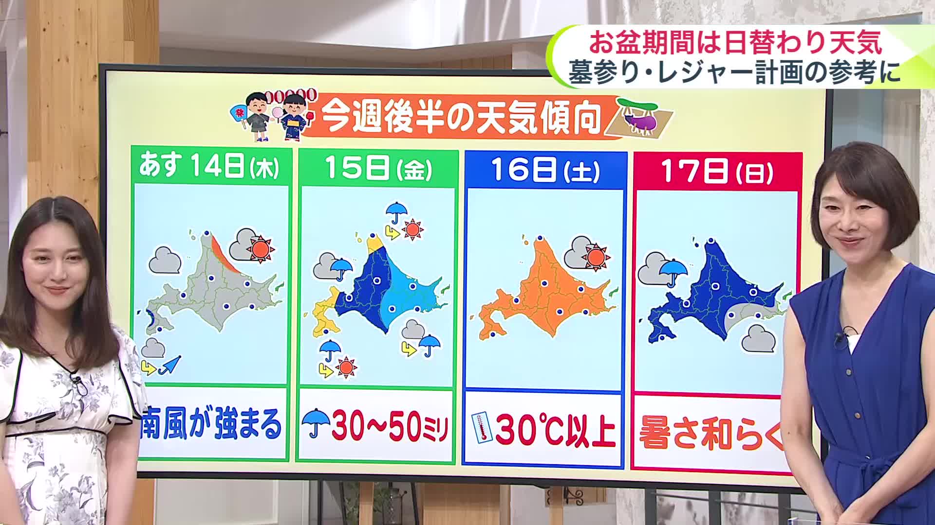 【菅井さんの天気予報 13日(水)】お盆期間は日替わり天気!2日おきに雨が降り30℃以上の暑い日も…