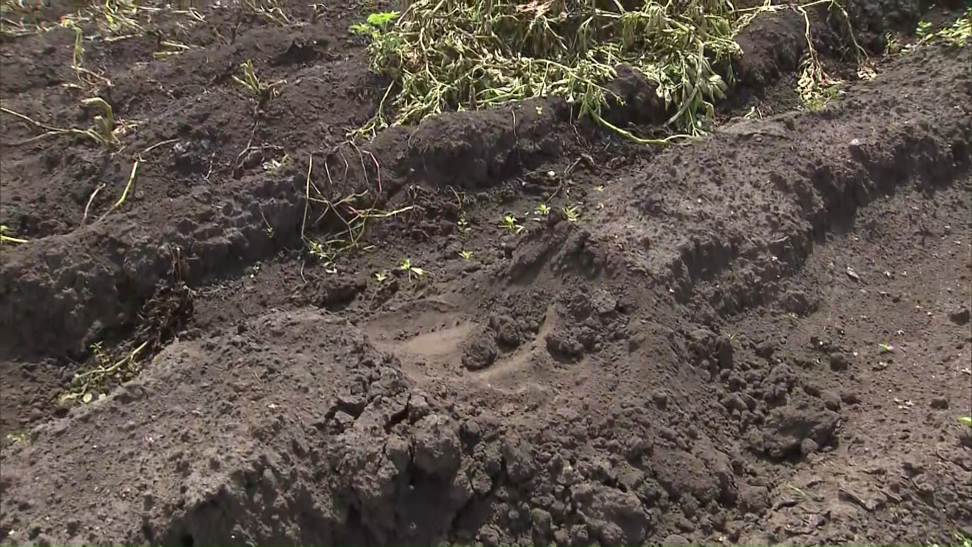 畑には幅約13センチの足跡が複数見つかっていて、クマによるものとみられています。