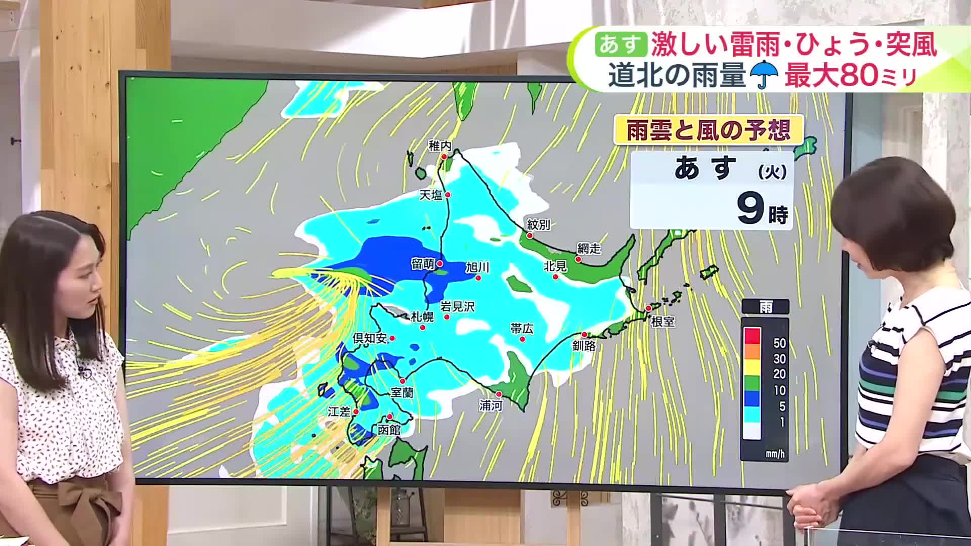 特に、道北や道南で雨量が多く、最大80ミリです。
