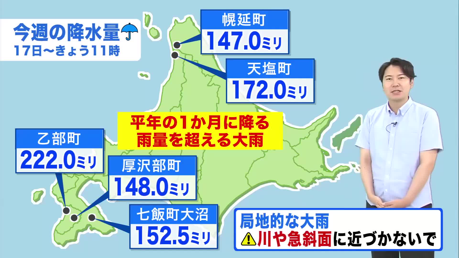 道北と道南は、この4日間で、8月一か月に降る雨量を超える大雨と