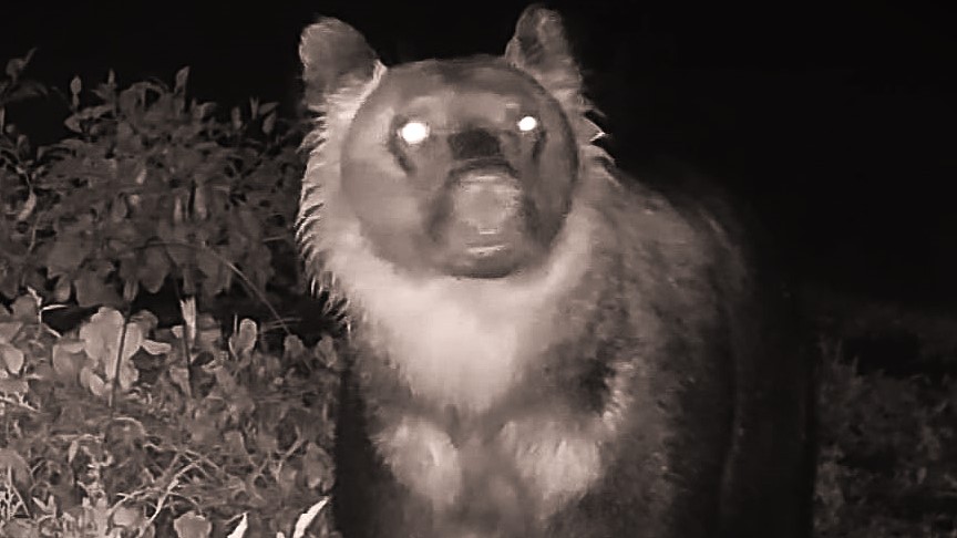福島町で新聞配達中の男性を襲ったヒグマ(撮影:視聴者)