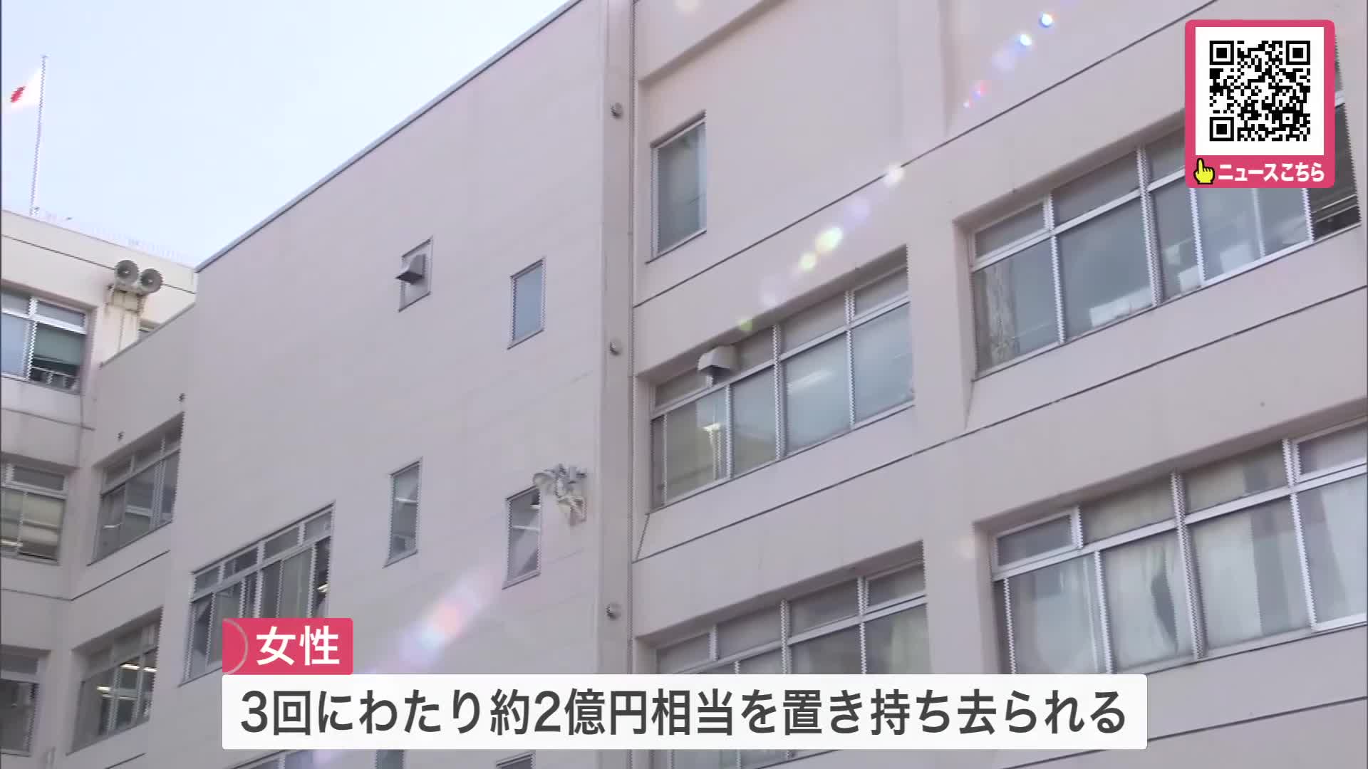 資産を捜査するため金の延べ棒を買って自宅の敷地内に置いて渡すよう指示されたため、女性は3回にわたり約2億円相当を置き、持ち去られました。