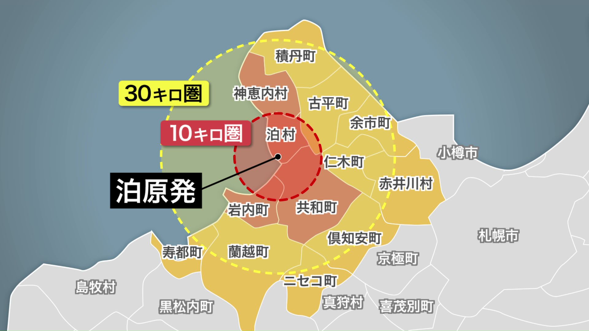 これまでは北電泊原発の10キロ圏にある泊村、共和町、岩内町、神恵内村が対象。