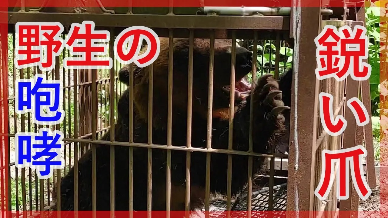 カメラに向かって激しく吠えながら襲い掛かる1頭のクマ。何度も襲い掛かり、鋭く伸びた爪が鉄柵の隙間から飛び出します。