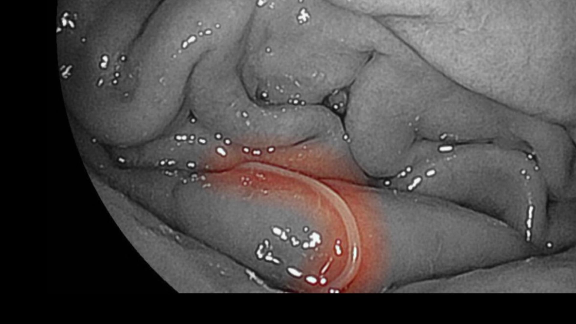 モニターに映ったのはアニサキス(実際の八木キャスターの画像)
