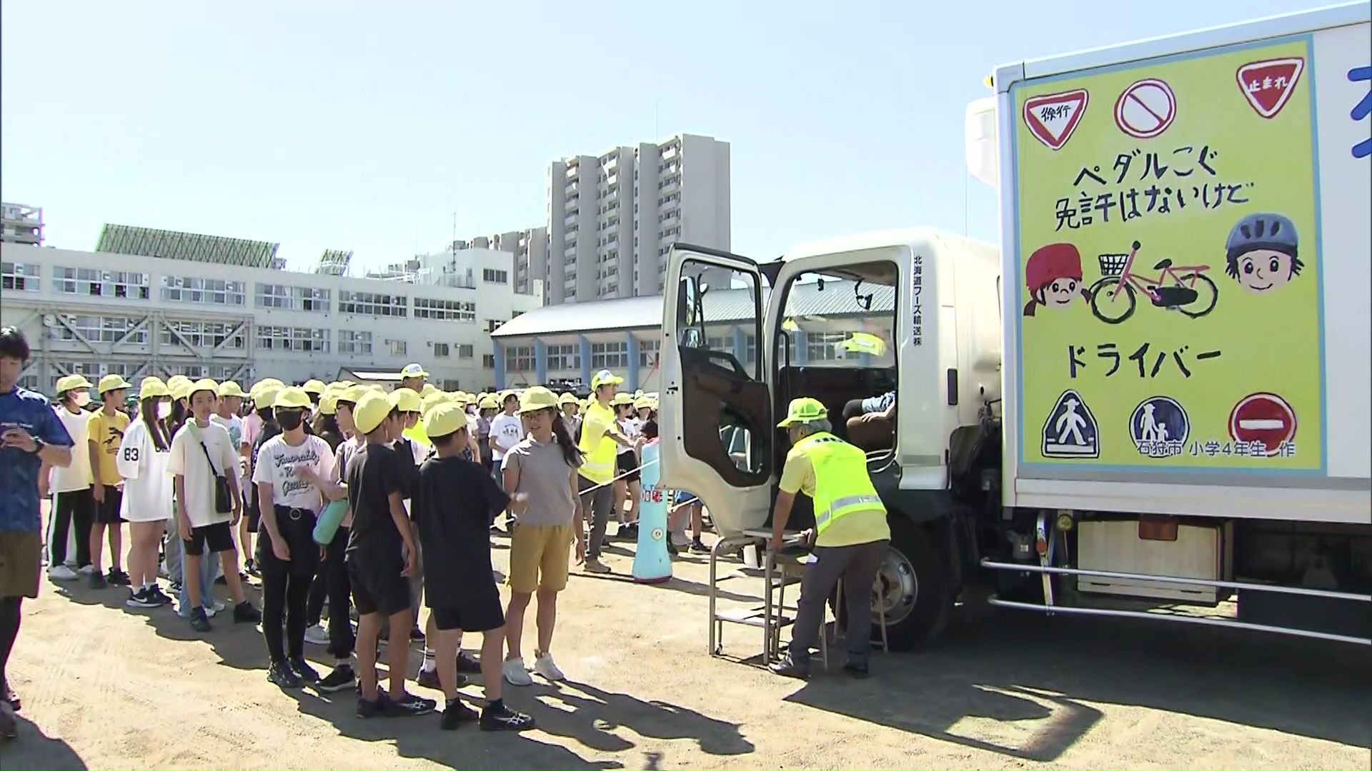 トラックによる交通事故の恐ろしさを知ってもらおうと、北海道札幌市西区の小学校で交通安全教室が開かれました。