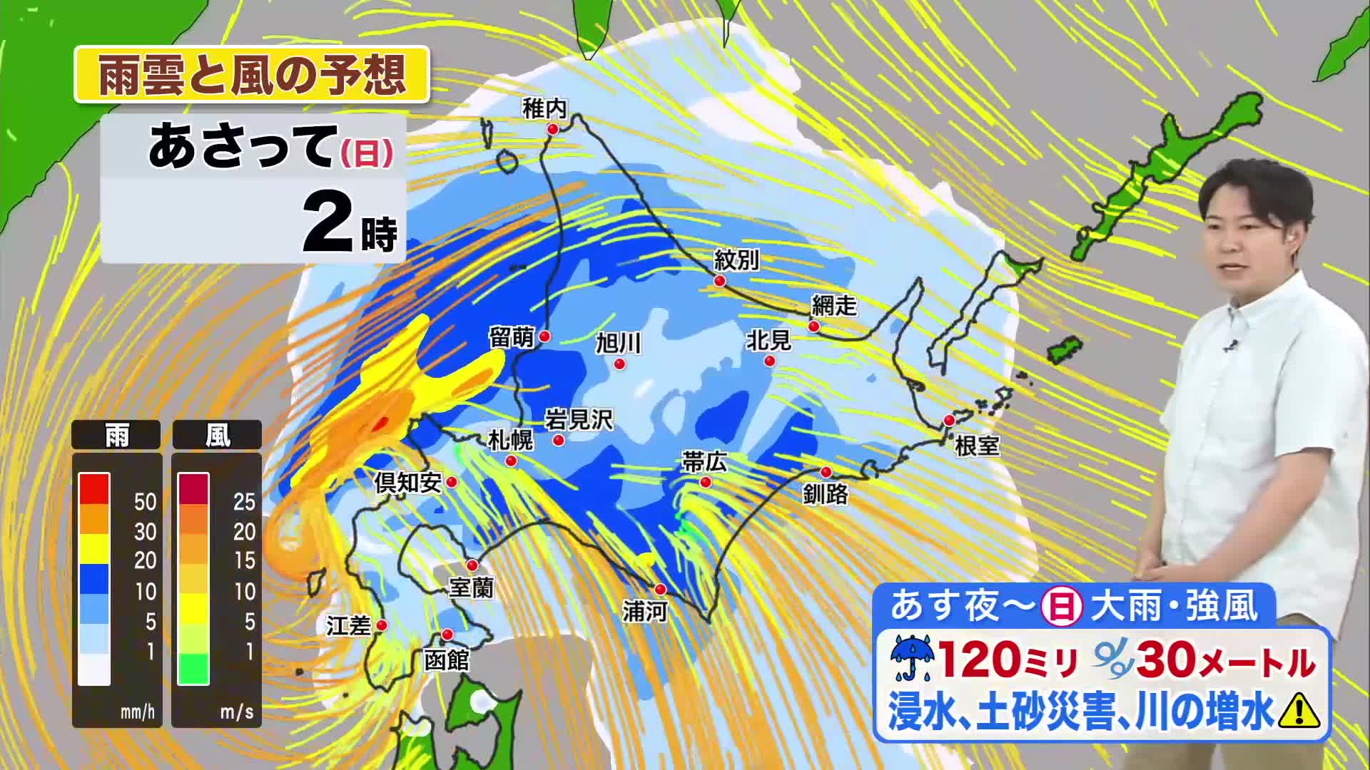 夜は、特に道南や胆振地方で雨・風が強まる予想です。