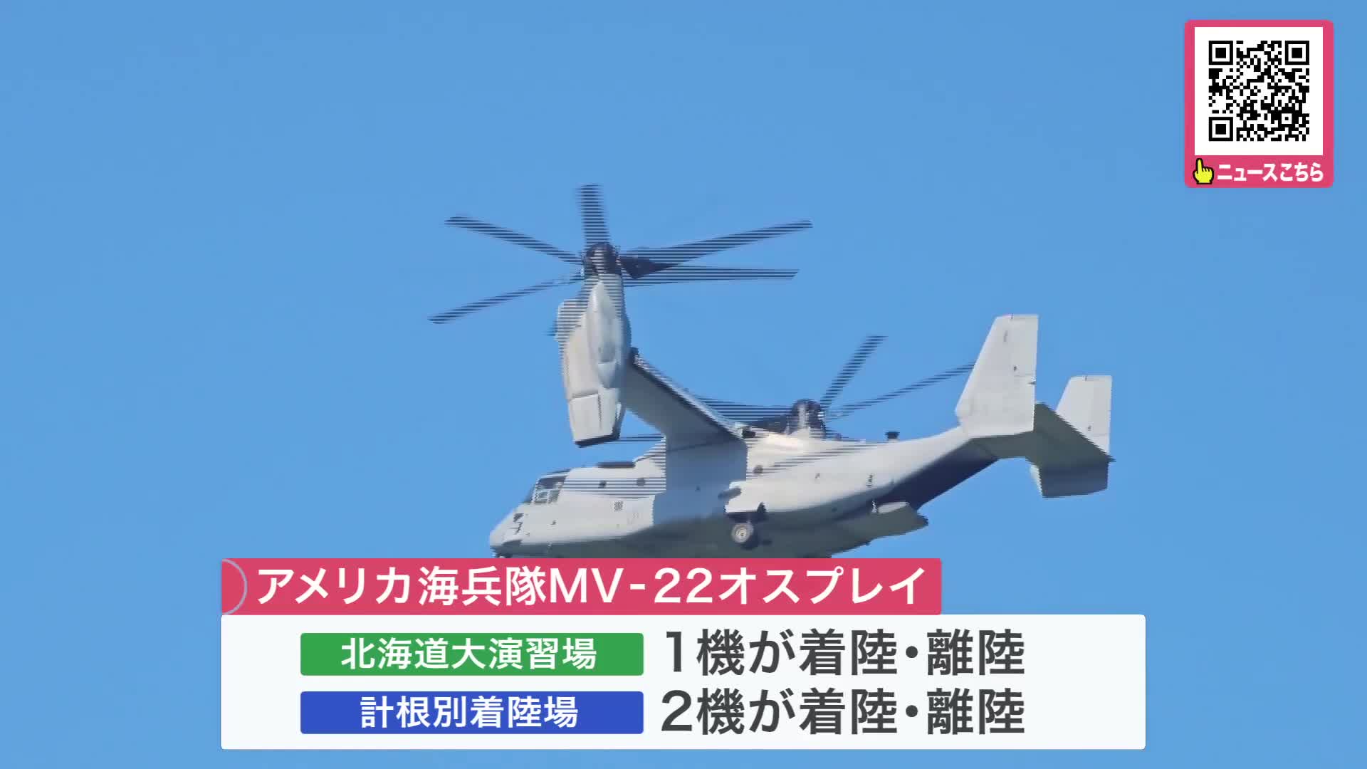 9月11日から始まった日米共同訓練に参加するため、アメリカ海兵隊のオスプレイが9月16日、3年ぶりに北海道に飛来しました。