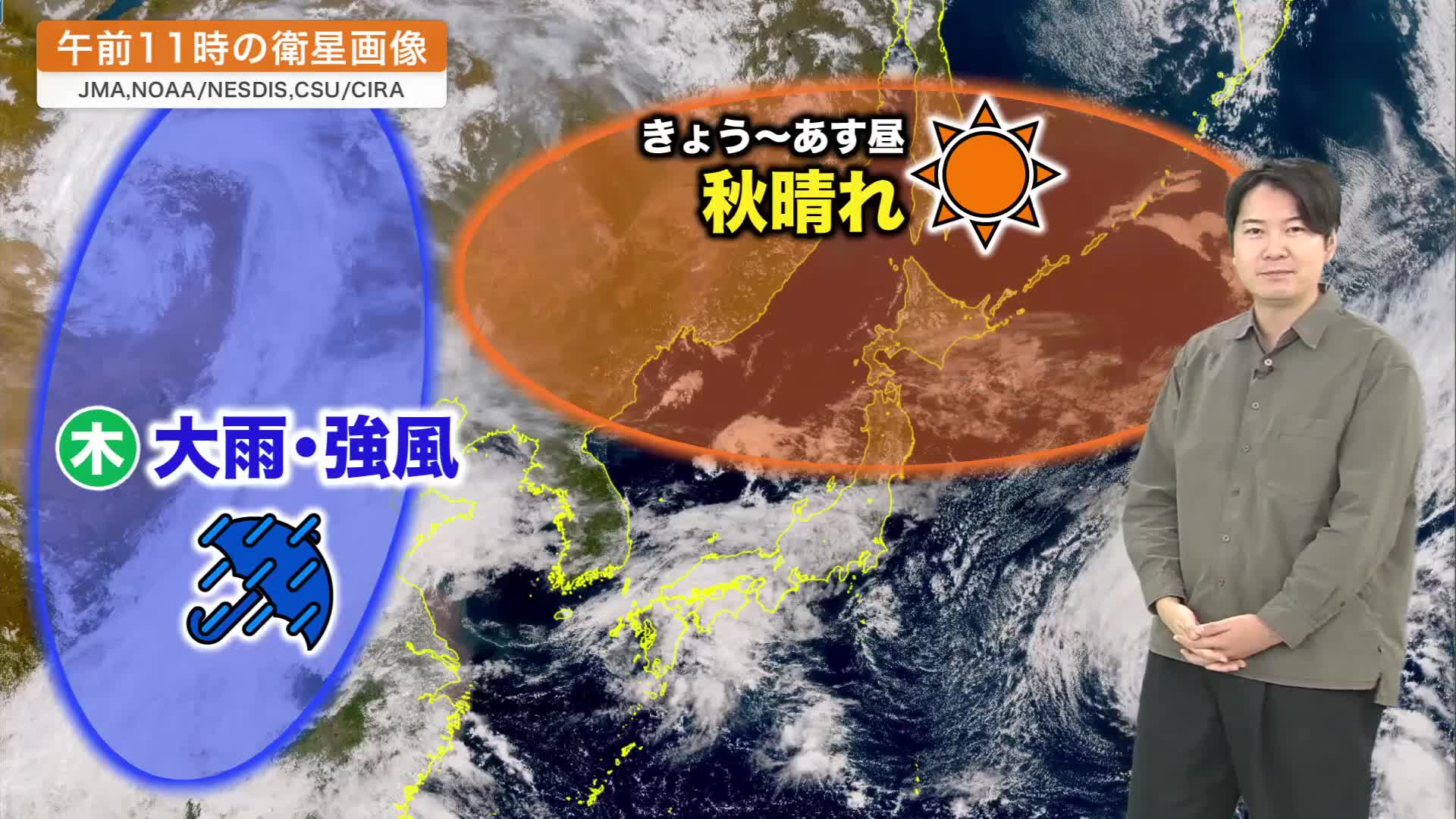 【北海道の天気 23日(火)】秋分の日は秋晴れ!木曜日は大雨・強風 荒れた天気に!