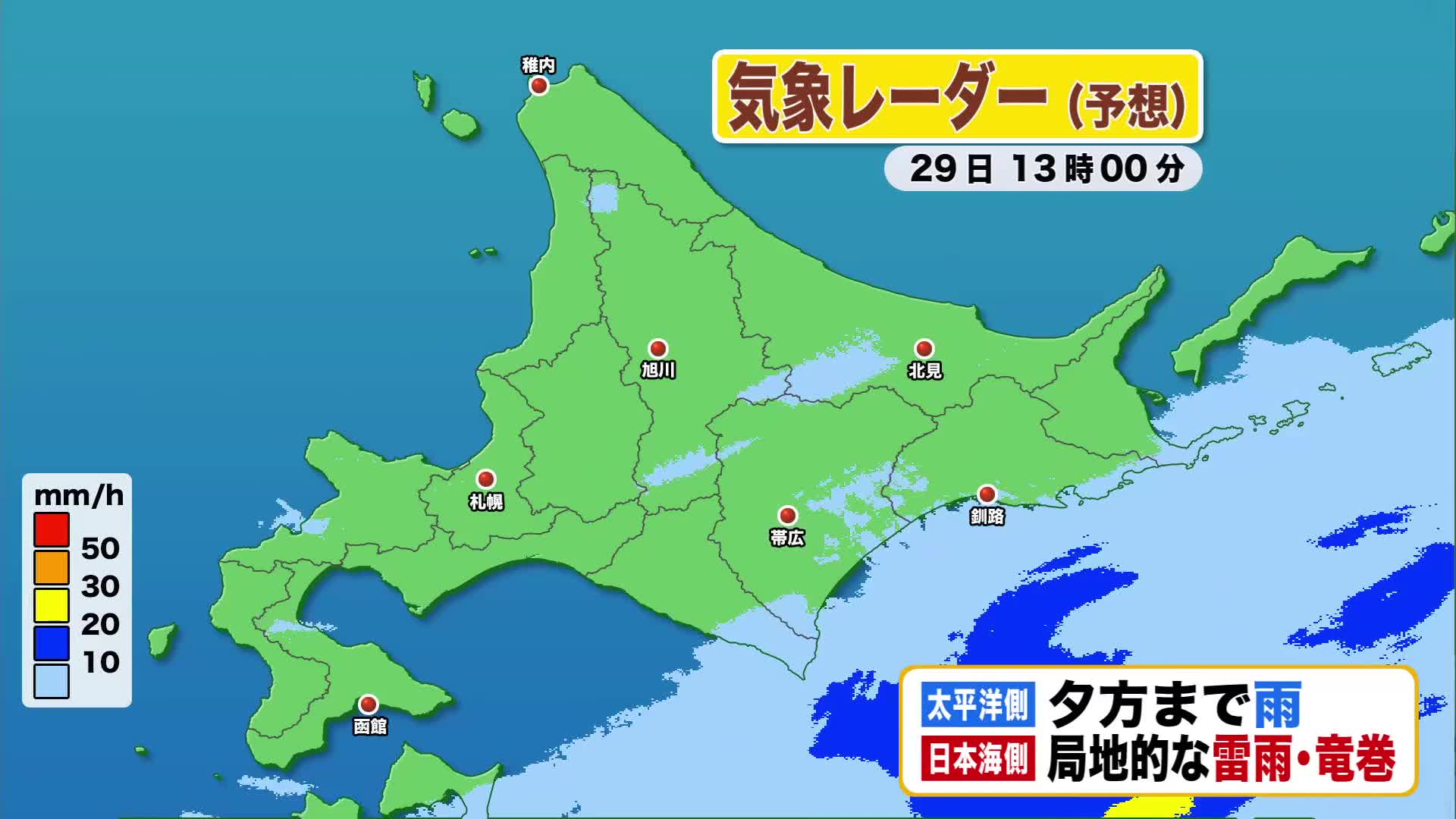 また、オホーツク海側でも、夕方はにわか雨にご注意ください。