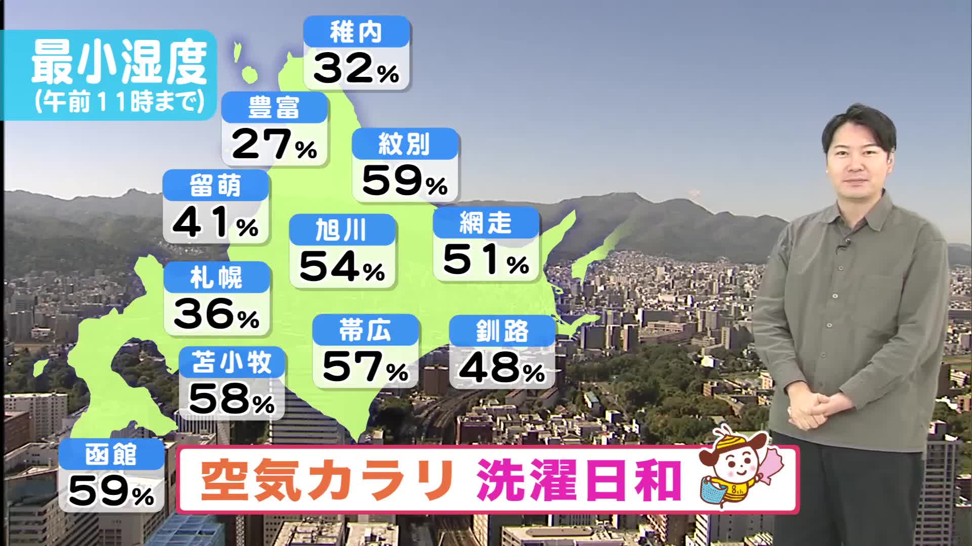 きょう30日(火)は全道で空気がカラリ、絶好の洗濯日和になりそうです。