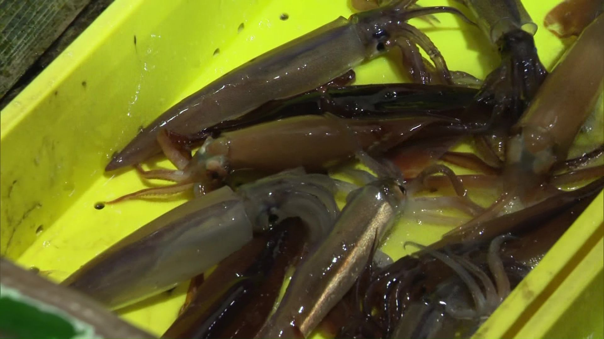 不漁続きだったスルメイカ漁が活気を帯び、価格も下がっています。