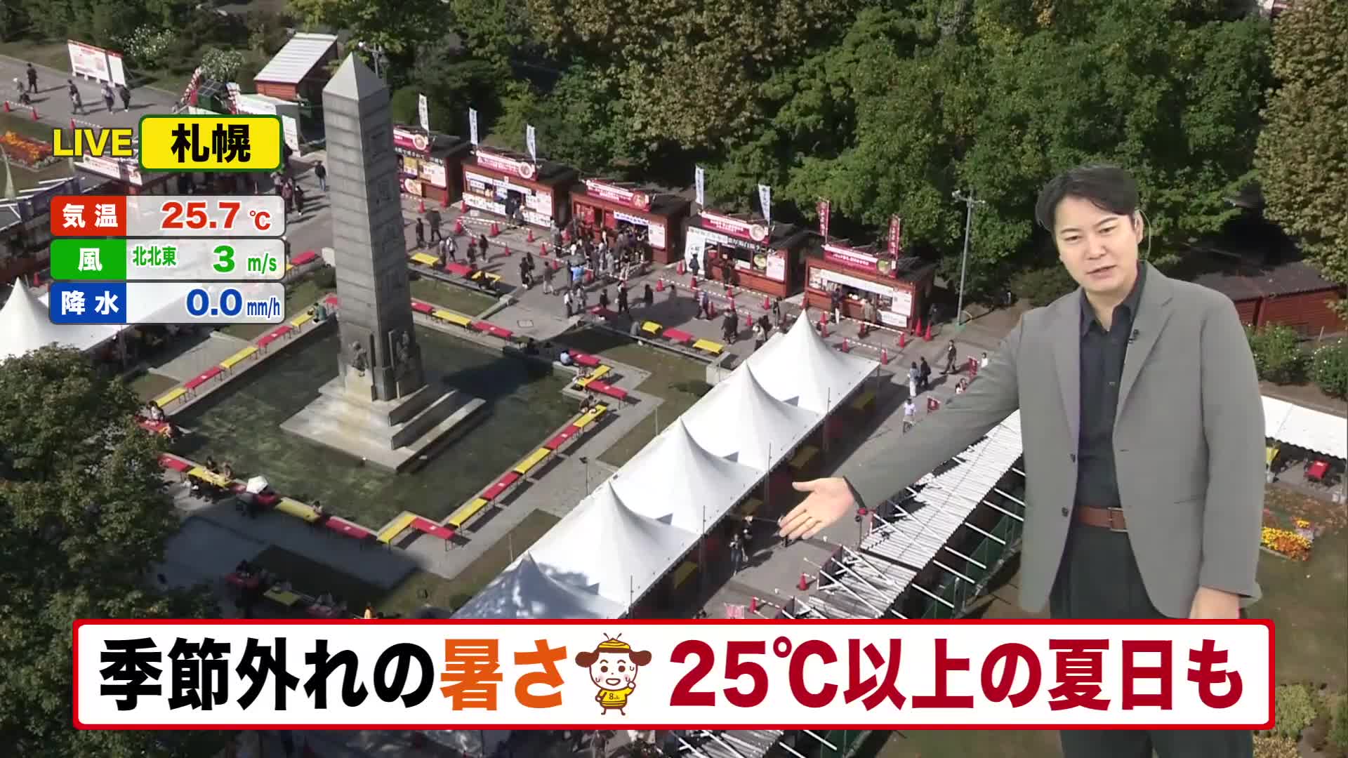 札幌、旭川、函館は、26℃と、季節外れの暑さが続きそうです。