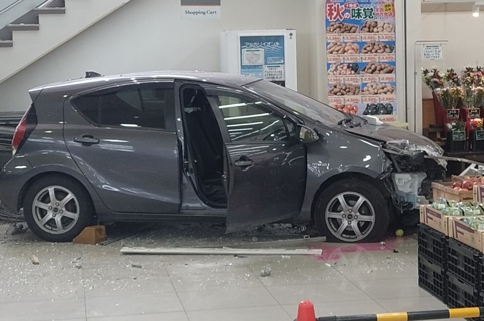 【速報】「車が2階から落ちきた」あわや大惨事…屋上駐車場から商業施設の店内に車が転落…売り場がグチャグチャになるもケガ人なし…高齢男性ドライバー、アクセルとブレーキの踏み間違いか<北海道釧路市> 事件・事故 社会 2025年10月7日15:49 事故があった現場(撮影:視聴者) 10月7日午後2時半ごろ、北海道釧路市の商業施設で「車が2階から落ちてきた」と従業員から警察に通報がありました。 警察によりますと、この事故で、屋上の駐車場から乗用車が店内の食品売り場に落下しましたが、巻き込まれた客や従業員はいませんでした。 運転していたのは70代くらいの男性で、右足に軽いけがをしているということです。 警察はアクセルとブレーキの踏み間違いとみて、原因を調べています。
