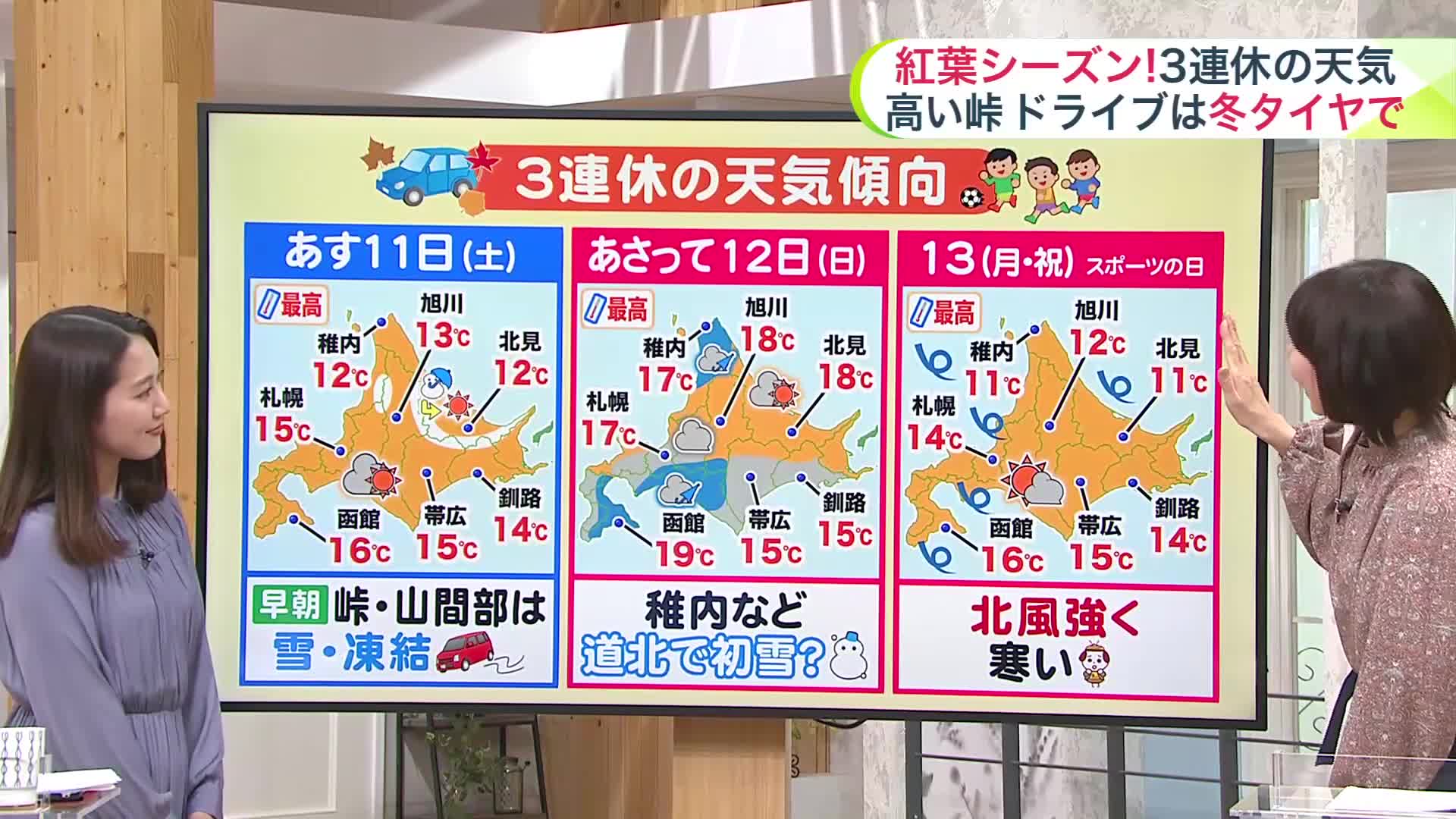 【北海道の天気 10日(金)】3連休は秋が深まる!晴れても風が冷たく稚内は初雪か…紅葉ドライブは路面状況にも注意