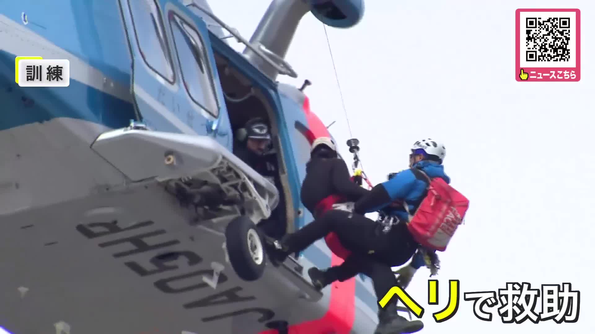 ヘリを使った迅速な救助訓練。