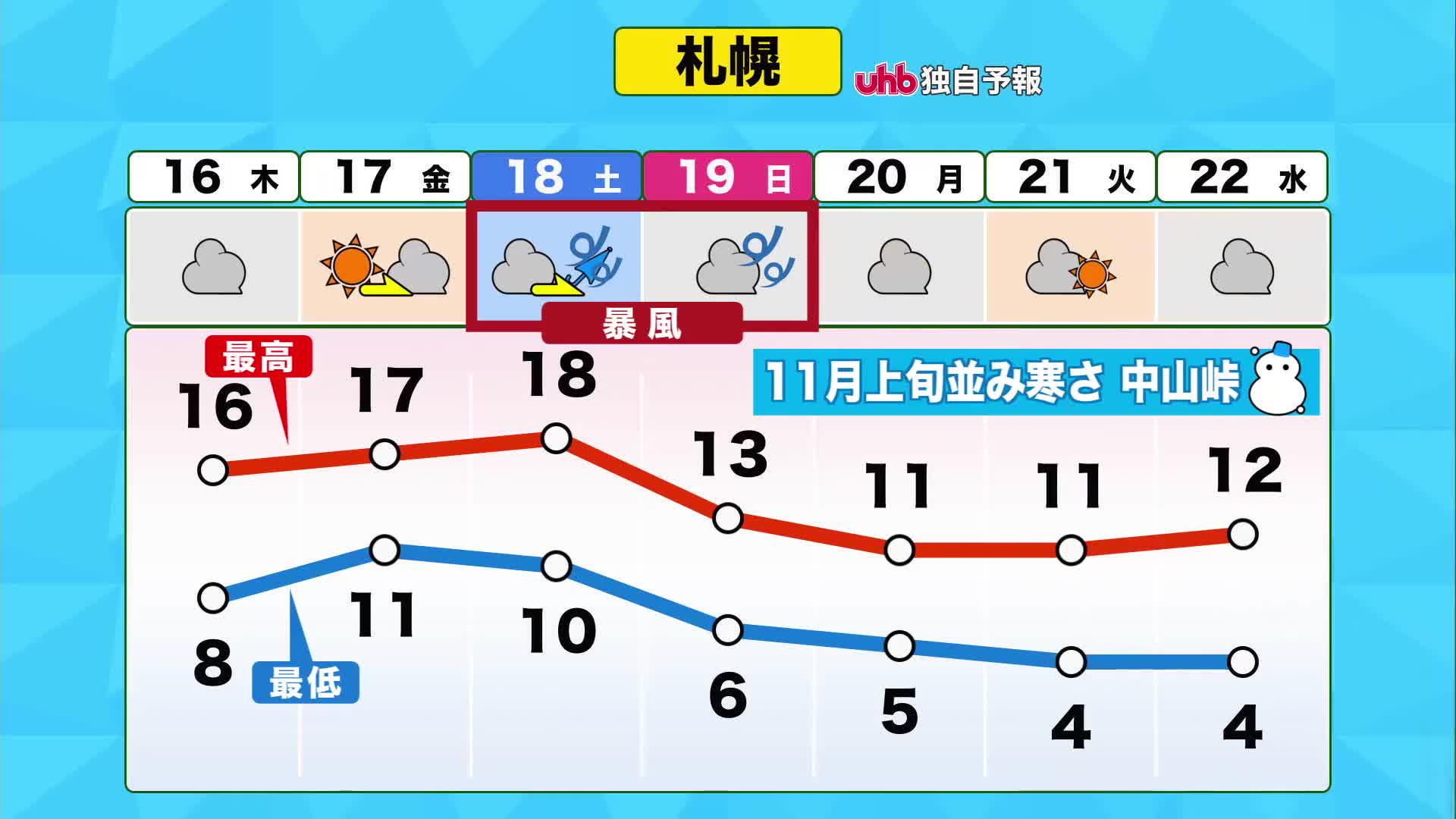 ただ、18日(土)から19日(日)にかけて、道内を発達した低気圧が通過し、
