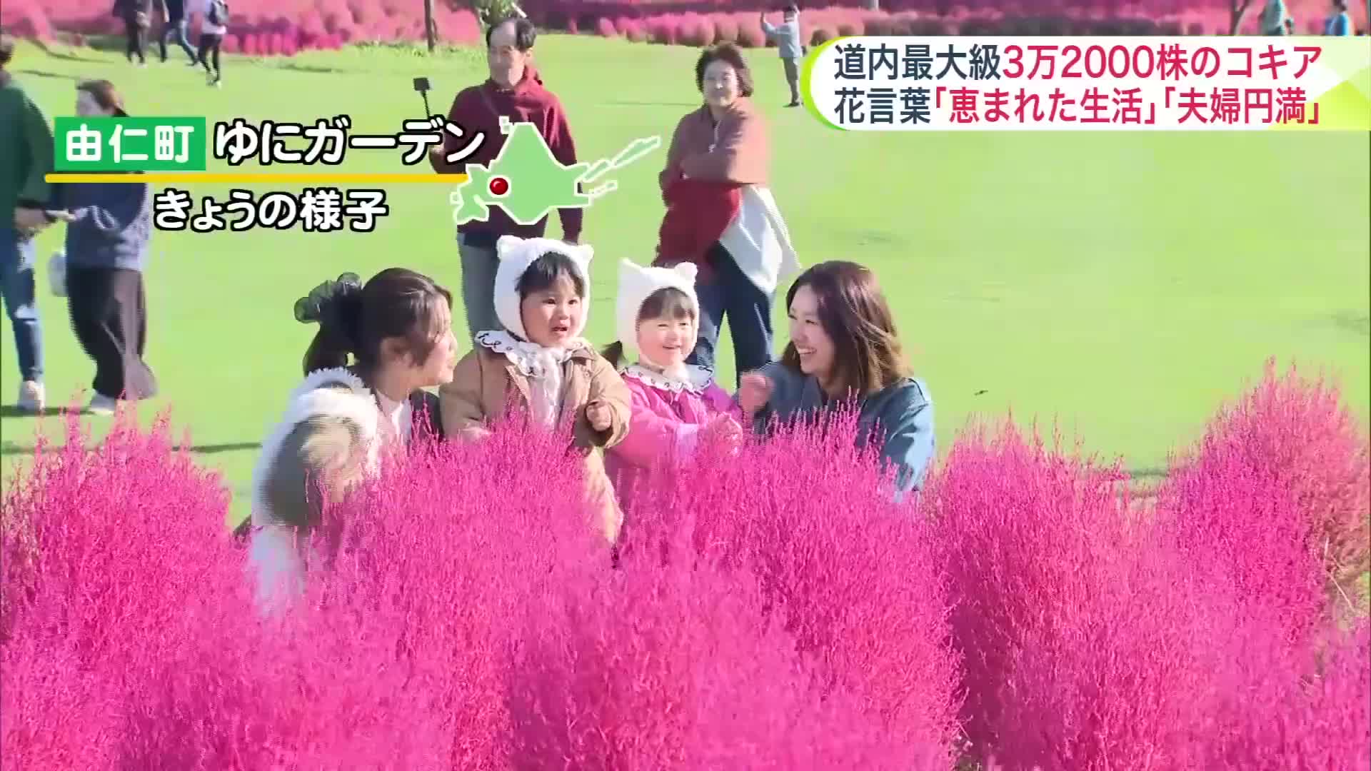 由仁町のユニガーデンは、道内最大級の約3万2000株のコキアが植えられていて、