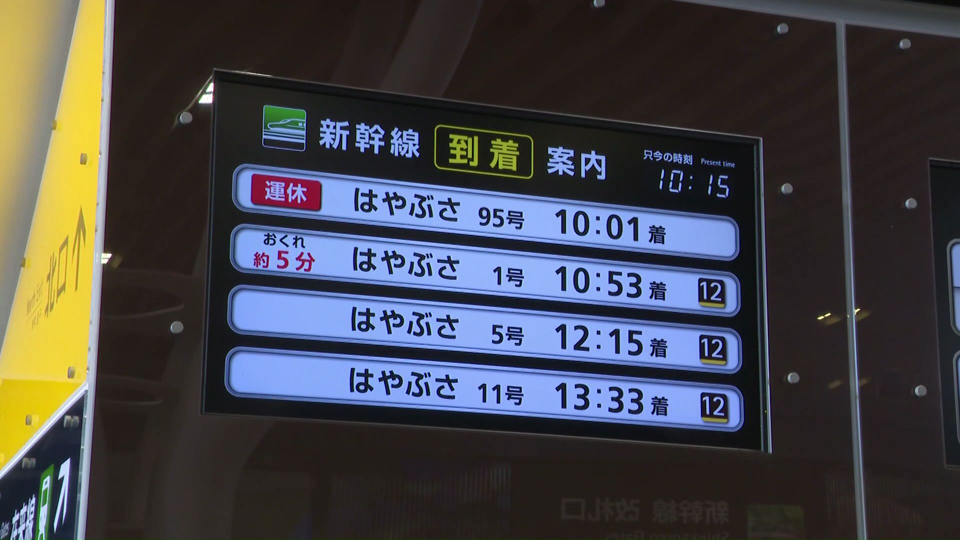 この影響で新函館北斗と新青森間の上下線で一時運転を見合わせ、6本が運休しました。