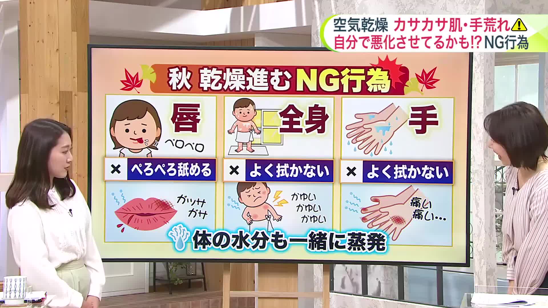 【菅井さんの天気予報 22日(水)】寒いと空気がカラカラ 秋・冬の湿度50%以下は乾燥対策を…ただし唇はなめちゃダメ!NGも知っておいて