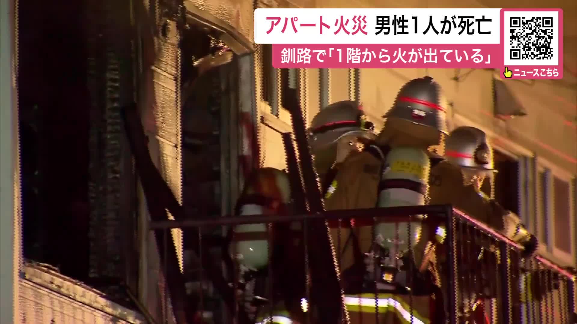 北海道釧路市で10月23日未明、アパートが焼ける火事があり、男性1人が死亡しました。