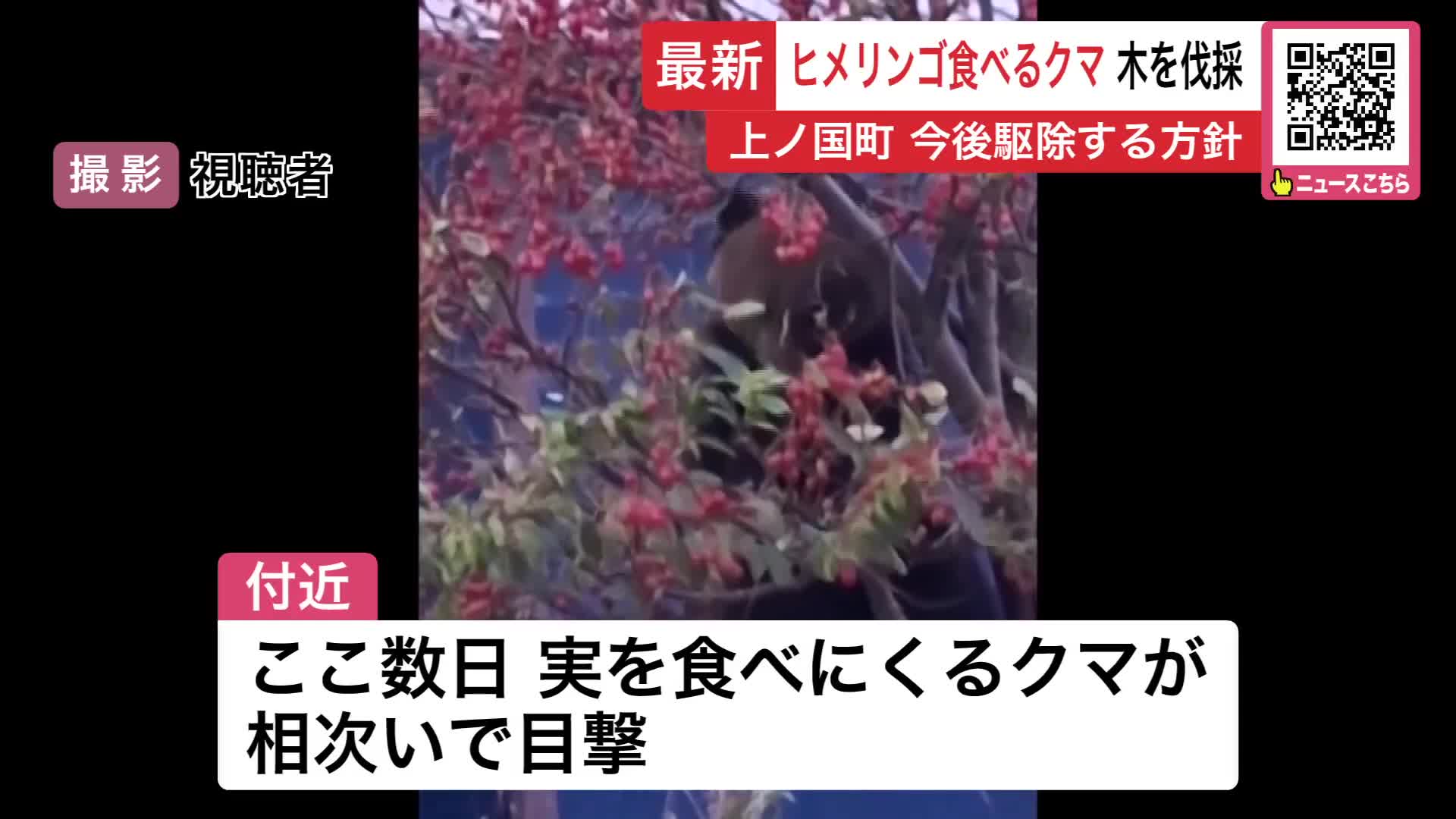 北海道南部の上ノ国町で10月26日、ヒメリンゴの実を狙ってクマの出没が相次ぎ、町は27日、木を伐採しました。