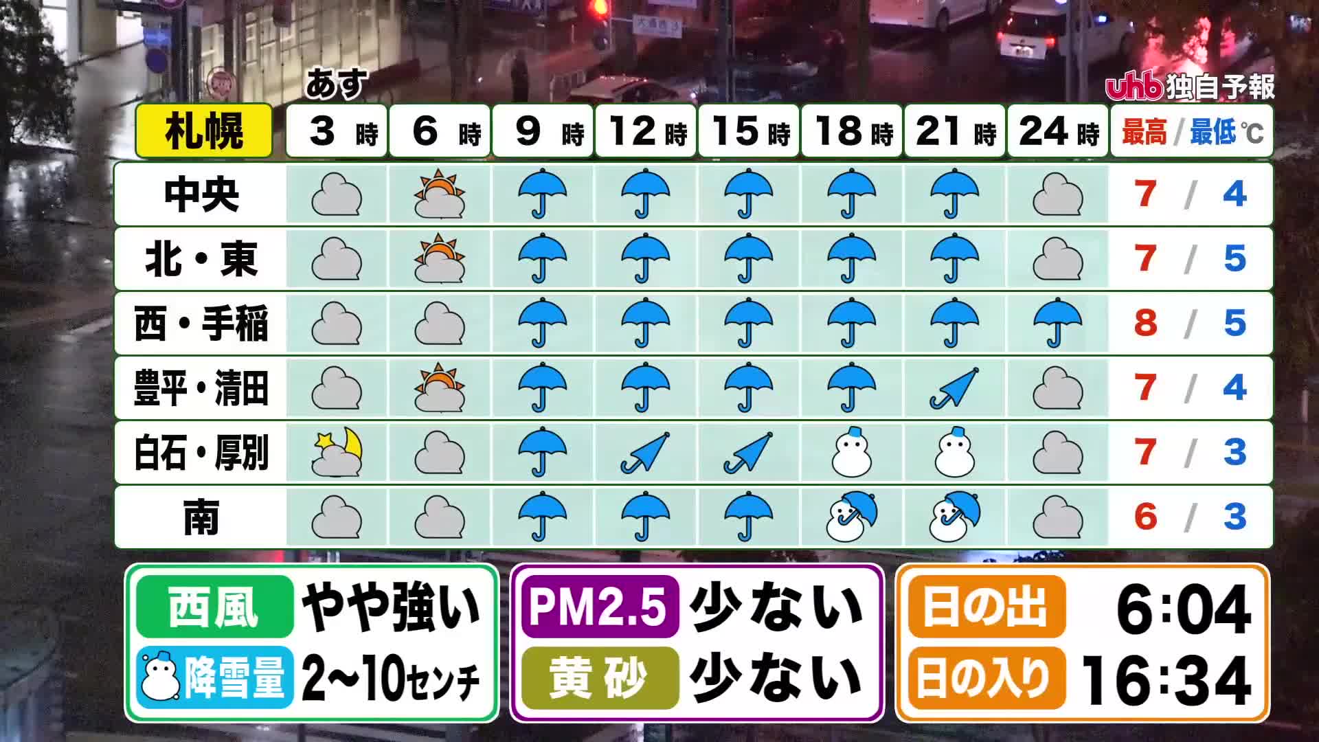 全道的に荒れた天気で、雨が次第に雪に変わりますので、最新の情報に気を付けて下さい。