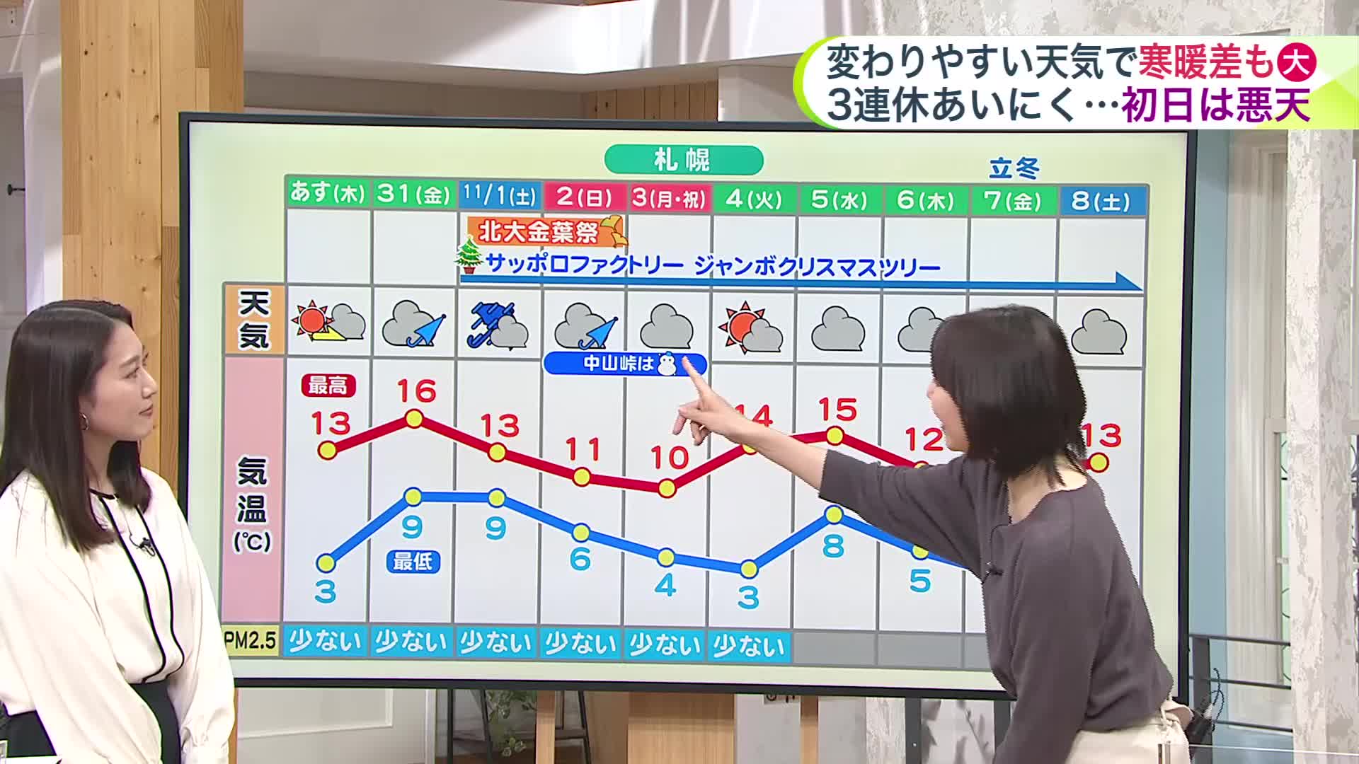 最高気温は、札幌13℃、旭川11℃と、ほぼ平年並みでしょう。