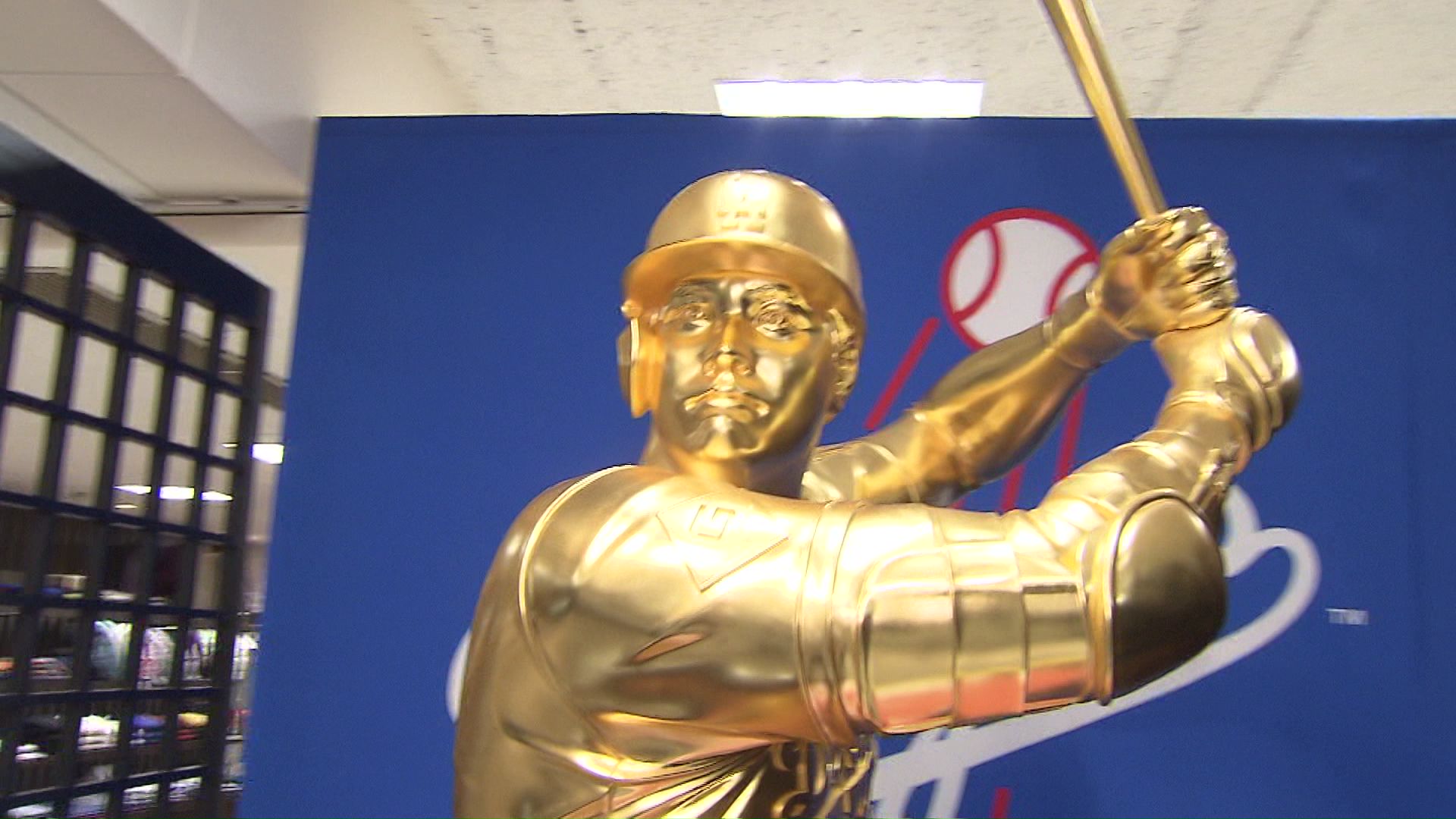 ワールドシリーズで活躍中の大谷翔平選手は、等身大の黄金像で登場しました。
