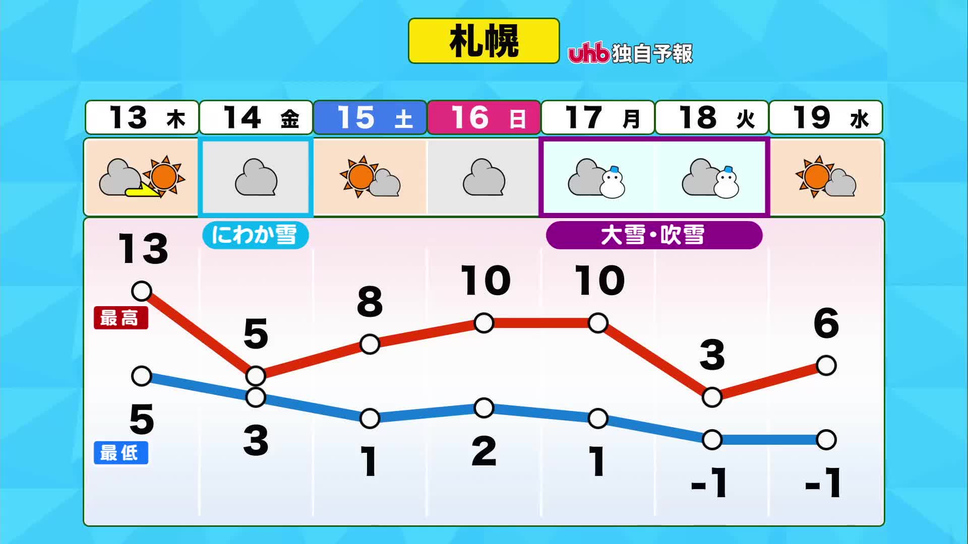 ◆週間の週間予報 13日(木)~19日(水)