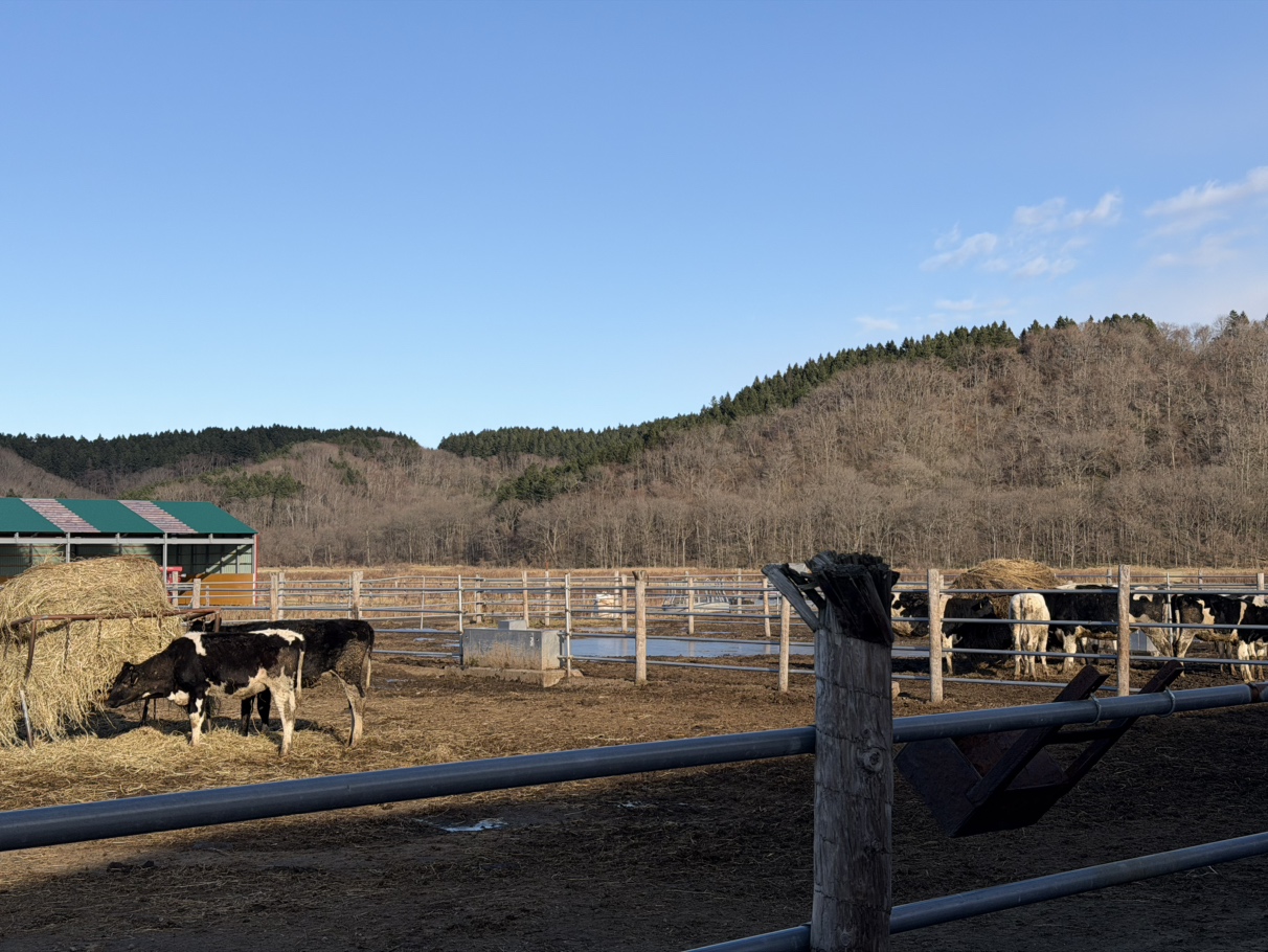 この牧場では約420頭のウシを飼育していて、牛舎と外を自由に行き来できる構造になっていました。