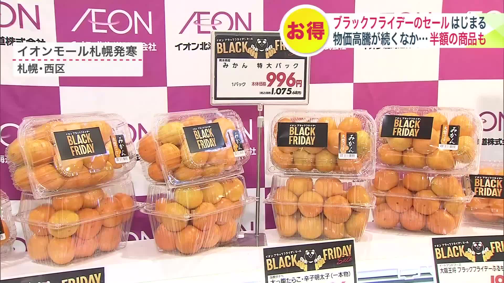 物価高騰が続くなか、イオン北海道の店舗では11月20日から「ブラックフライデー」のセールが始まります。