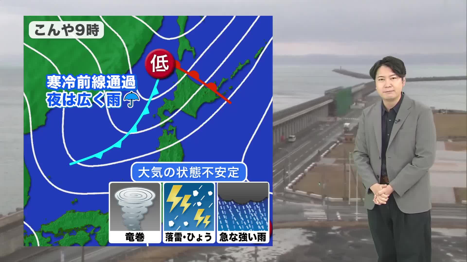 こんやは、北海道を寒冷前線が通過し、広い範囲で雨となりそうです。