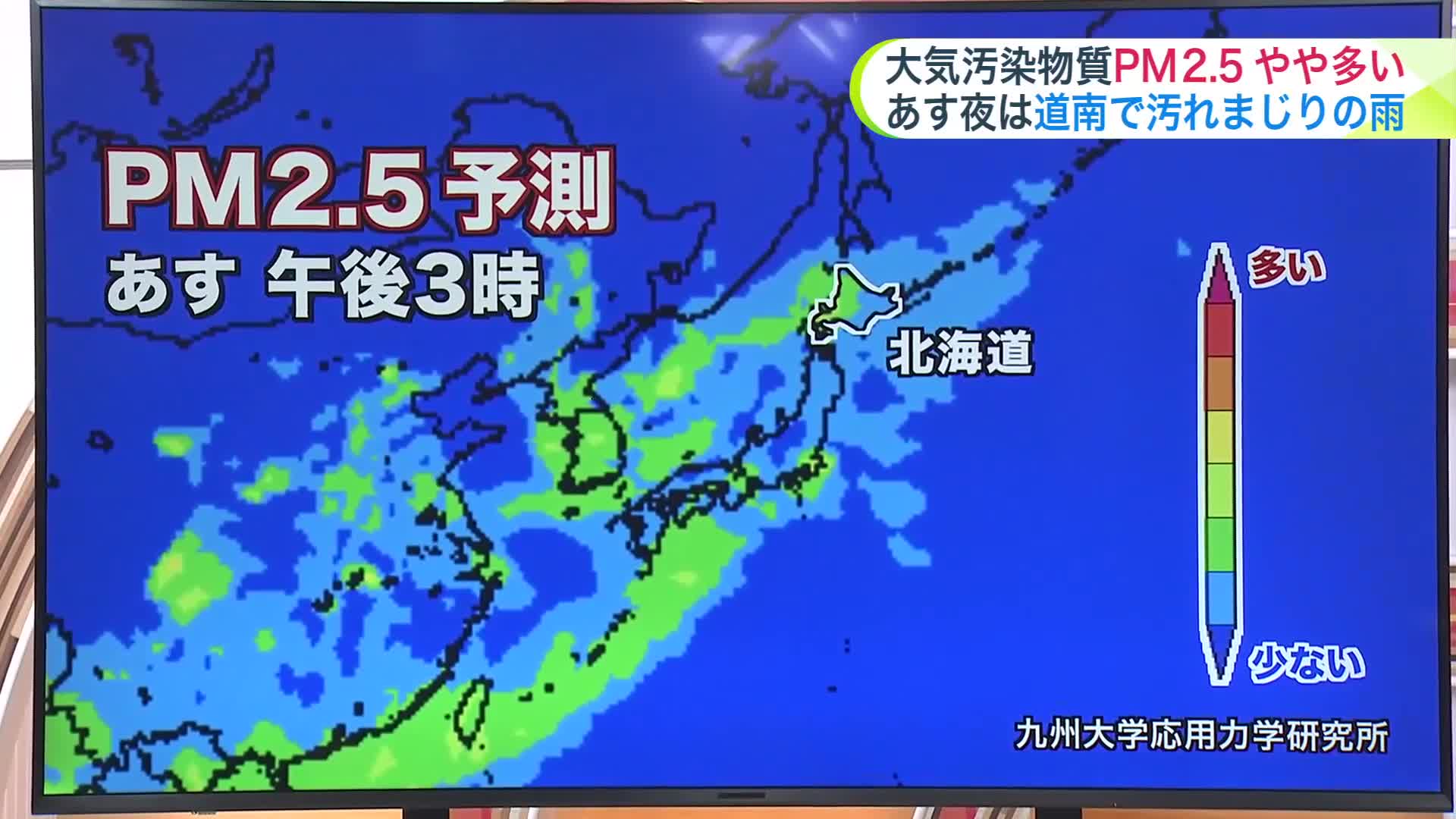 北海道の上空に、大気汚染物質が流れ込んでいて、