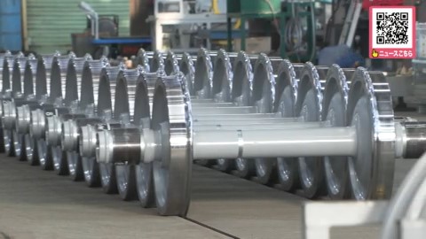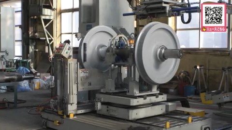 室蘭市のJR貨物北海道支社、輪西車両所で車軸に車輪をはめる際に専用の機械を使い圧力をかけてつなぎ合わせる作業が公開されました。